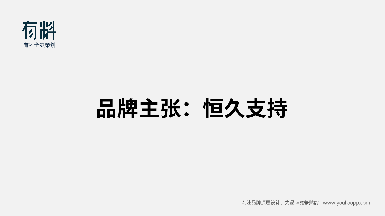 一个好的品牌主张,必须对接客户需求,并给出强有力的购买理由驱动客户做选择。有料品牌从目标客群需求出发,为快意电梯创意slogan“恒久支持”。